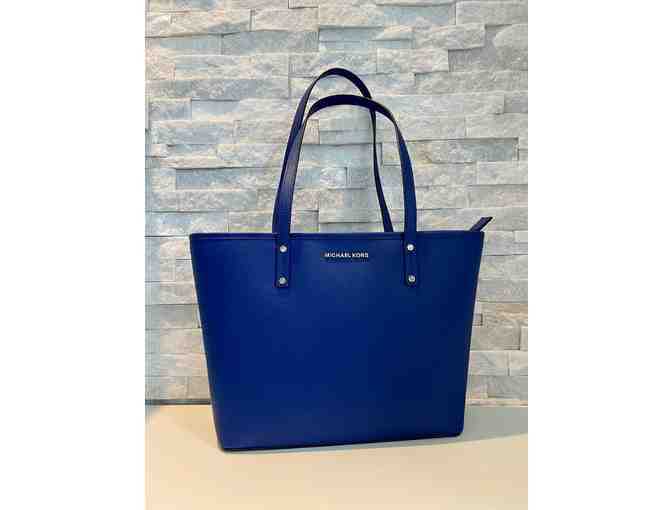 Michael Kors Rose Leather Jetset Travel Tote Cobolt Blue Leather