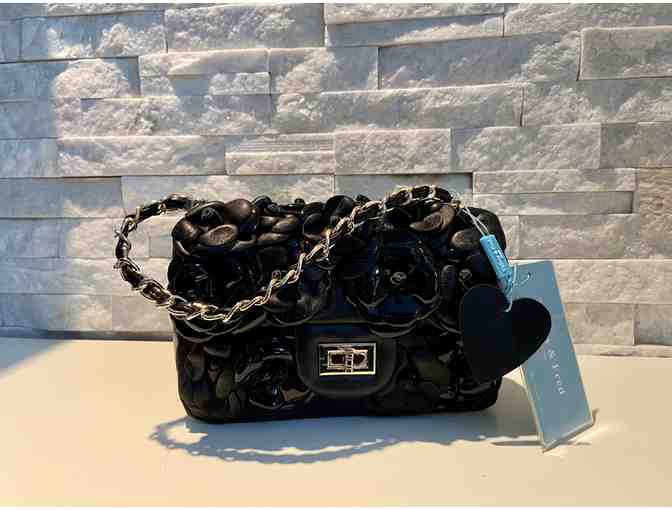 Tiffany & Fred Paris, black floral leather shoulder bag, black & patent petals/quilted back