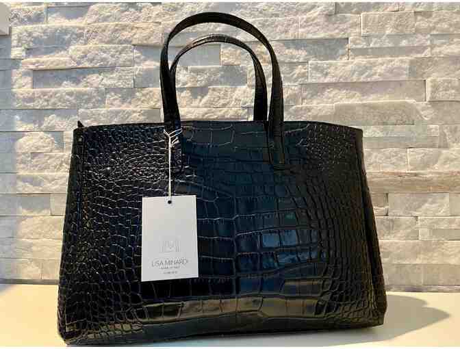 Lisa Minardi Black Croco leather bag, Made in Italy
