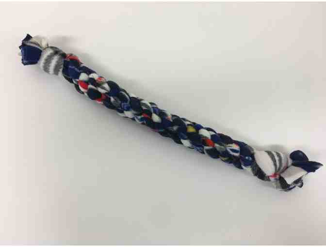 Give your dog fun exercise while you both play with this handmade dog toy. Made of flannel material braided into a perfect tug of war “rope”, this creative toy is sure to keep you and your dog occupied for hours. When you’re not playing a tugging game, the toy can be thrown for a game of catch or fetch. These fun, colorful toys are designed for medium to large dogs.