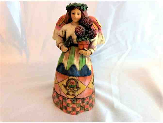 A fabulous Friend of 47 has donated "Angel of Persistence". This 2002 Jim Shore figurine is model #108920. She is a 7" tall colorful Angel Gardener. She is holding flowers and a flower pot in one hand and a hand spade in the other. Her wings are beautiful!
