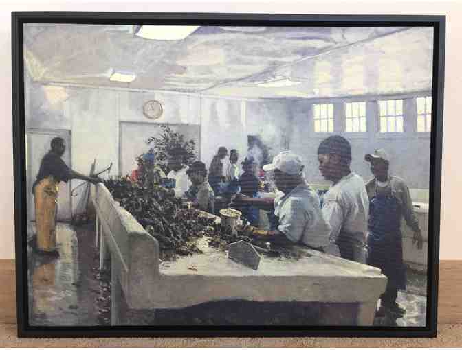 Bluffton Oyster Factory Shuckersby West Fraser, Giclee' reproduction on canvas exclusively for Boys and Girls Club Gala. Painting the Southern Coast, The Art of West Fraser, autographed book.