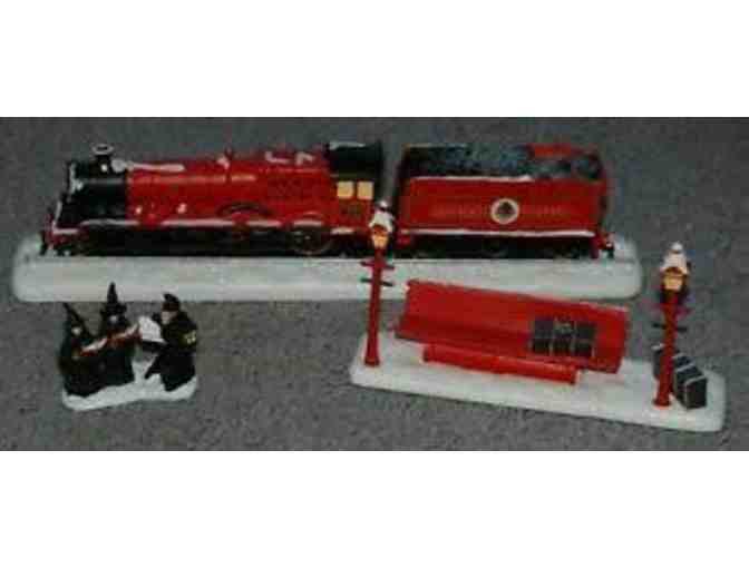 Hogwarts Railway Express Train is fourth in the series from Hawthorne Village. Measures about 9.75” long and 2.5” tall. The railway express release includes the bench and witches accessory figure. Opened for inspection but never displayed. Comes in original packaging with certificate of authenticity.