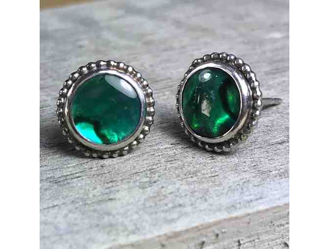 Green Paua Shell post earrings set in 925 sterling silver. Green Paua shell is only found on the coast of New Zealand!
