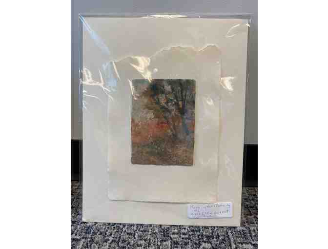 Pating is 4.25"x5.57" and is matted with a 11"x17" matte.