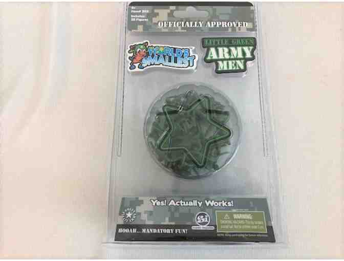 The World's Smallest Little Green Army Men are a miniature version of the classic toy that has been entertaining children for decades. These mini versions of the classic Army Men toys allow anyone to become a military army officer and fight bad guys.