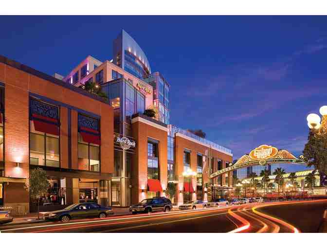 Enjoy the rock star lifestyle downtown San Diego. There's something electric about being in the middle of it all. Hard Rock Hotel San Diego puts you in the limelight with chic accommodations in the heart of downtown and the famed nightlife of the Gaslamp Quarter. Whether you're here to catch a game at PETCO Park (located just one block away) or attend a corporate event at the San Diego Convention Center (right across the street), we'll take you there. Two-night stay in a King Suite at the Hard Rock Hotel San Diego. Includes taxes and valet parking. Weekends included.