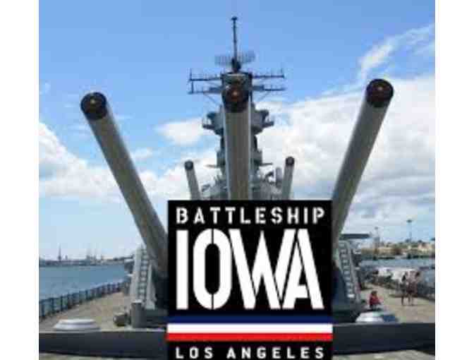 Four (4) tickets to visit the Battleship USS Iowa. Battleship USS Iowa is Los Angeles' museum for a fun family experience at the LA Waterfront in San Pedro. The USS Iowa was the lead ship of the Iowa class of battleships.