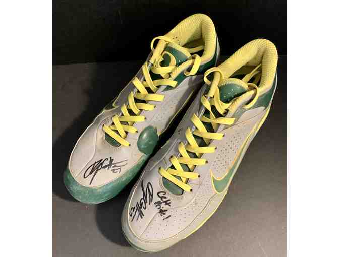 Ryon Healy (Crespi Alumnus - Class of 2010) signed Univeristy of Oregon baseball cleats - includes the inscription 'Celt Pride!'