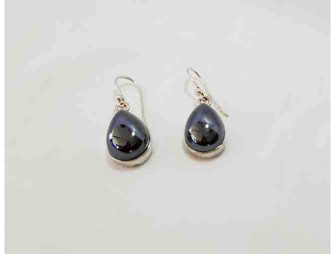 These 3/4" long teardrop shaped Hematite earrings are set in silver with french hook ear wires.