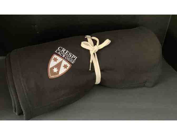 Keep yourself cozy with this black, cotton-blend blanket embroidered with Crespi Lacrosse....a must have for those chilly nights in the stands!