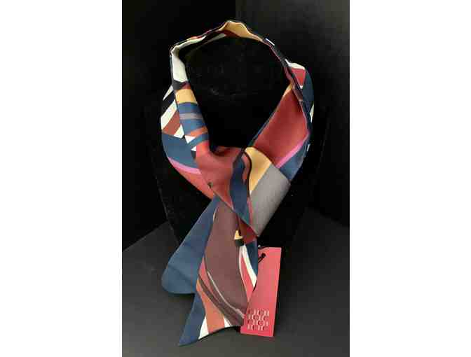 Beautiful multi-colored neck scarf by Carolina Herrera with mixes of navy, jewel tones, black...you'll look stunning!