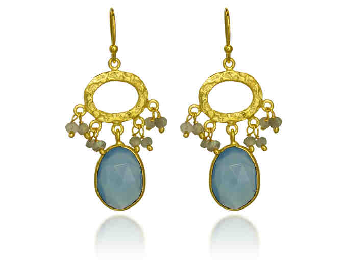 Hammered 18k plated dangle hook earrings with aqua tones by Chuvora