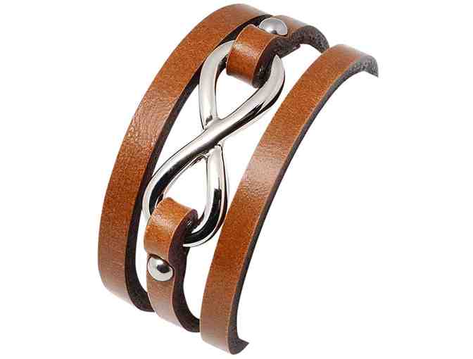 Chuvora - Stainless Steel & Brown Leather Infinity Sign Multi-Wrap Bracelet.
