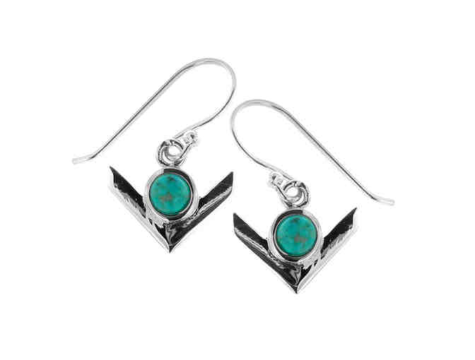 Chuvora - 925 Sterling Silver Chevron and Dyed Blue-green Round Turquoise Gemstone Dangle Earrings