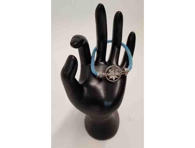 This auction item includes a Brighton blue cord bracelet with compass charm.