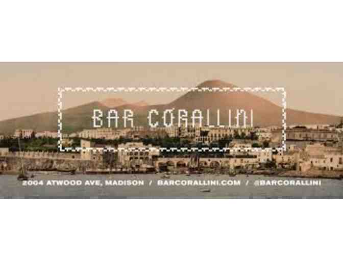 ***For delivery to all of Madison, Middleton, Fitchburg, Verona, or Monona, please visit Bar Corallini's website and click "Green Cab Delivery"