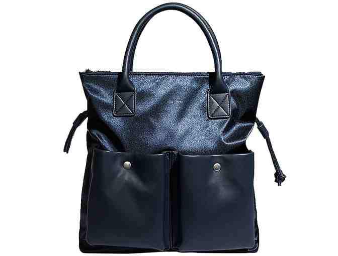 Pixie Mood Avery Tote, color Satin Blue. PETA approved cruelty-free made with vegan materials.