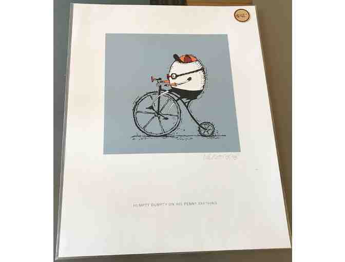 Velotykes art features nursery rhyme characters on a bike. Six 8"x10" prints and four 12"x16" prints are available. Combine for a custom made set!