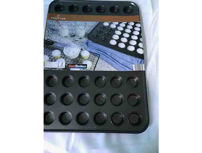 Calling all bakers........................add this 48 cup mini muffin pan by Crofton to your bakeware inventory. This muffin pan gives you the opportunity to make a larger volume of all kinds of delicious desserts.