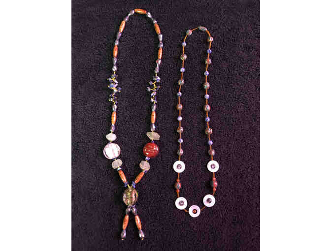 These two hand strung beautiful necklaces feature a variety of beads. Bid now to own this guaranteed conversation starter!