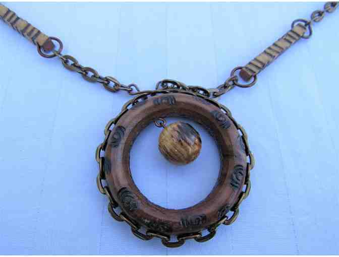 Wood and Cooper Color Chain Necklace with circular pendant. Necklace is very lightweight.