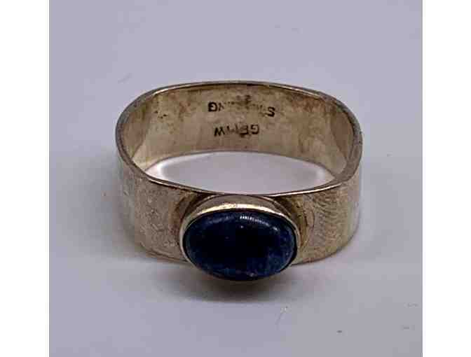 Sterling silver ring with blue stone. The stone is gorgeous. Please see attached photos. This is a size 6 and hallmarked "sterling".