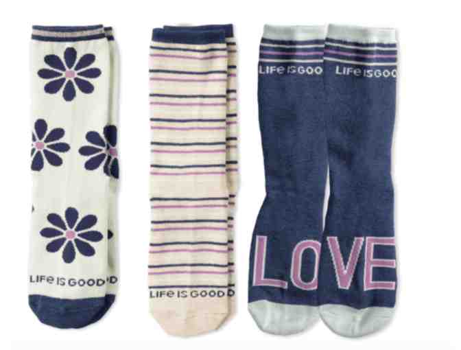 Life is Good 3-PACK GIRLS DAISY LOVE CREW SOCKS - small