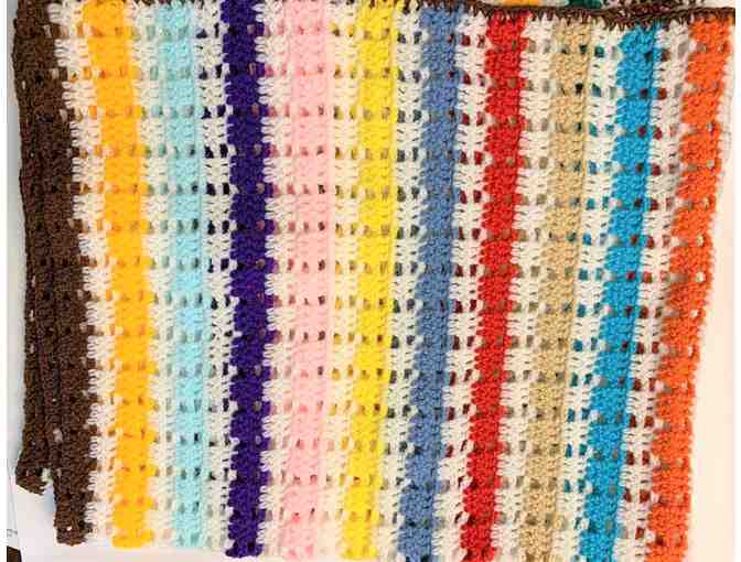 Beautifully crocheted lap robe with a lovely assortment of colors. It's so soft and will keep you warm on a cool evening.