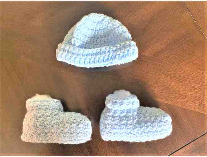 Adorable all blue Baby Hat and Booties for that precious little boy!