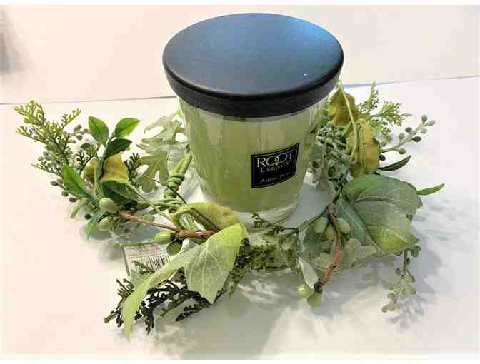 Pear Scented Candle with wreath decoration, DVD and Flour Sack Towel