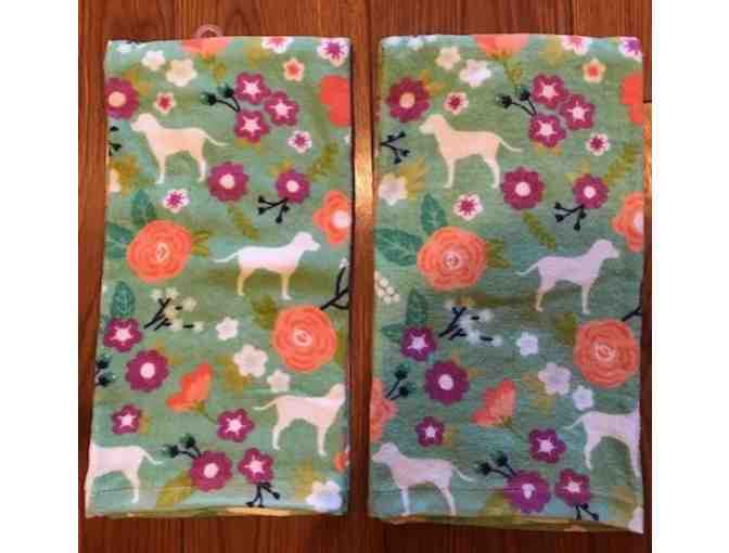 Brighten your kitchen with these pretty terry cloth dog themed dish towels.