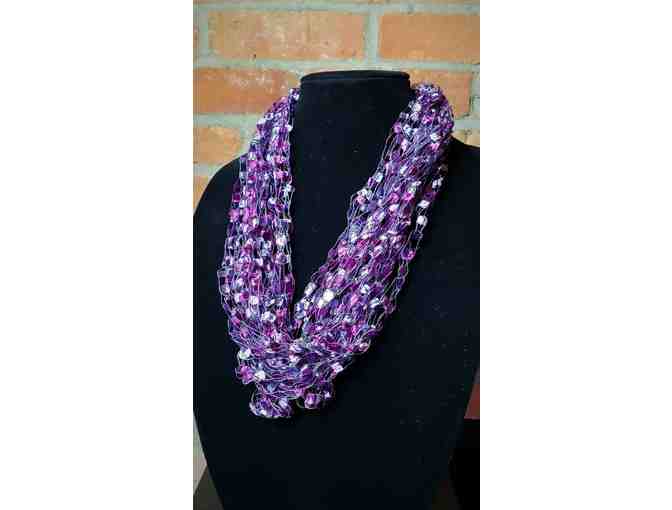 Hand-crafted one-of-a-kind piece made by the incarcerated men and women at The Ohio Reformatory for Women at Marysville, Ohio and the Marion Correctional Institution at Marion, Ohio. Proceeds from the sale of the jewelry provides resources to support them in Kindways Embark Program on their journey from incarceration to independence. Hand woven using ladder yarn.