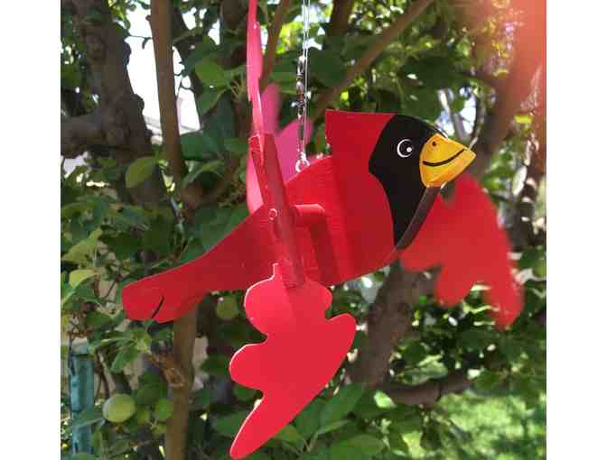 Whirlygigs have wings that spin in opposite directions freely in just a light breeze. Hand painted, hand made whirlygig, cut from pine, painted with acrylic. Great attention paid to details. Measures approximately 6" x 6". Hangs from a nylon string. For indoor or outdoor use. Coated with spray shellac for weather protection.