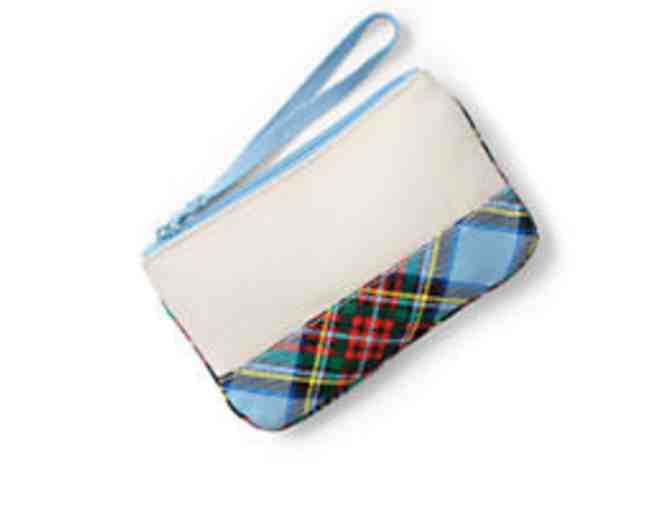 Land's End Print Canvas Zipper Wristlet - CHILLED BLUE PLAID