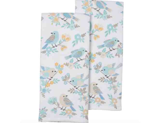 Cute and functional, Flight in Bloom Villa kitchen towels are perfect for cleaning up messes with their absorbent cotton construction.
