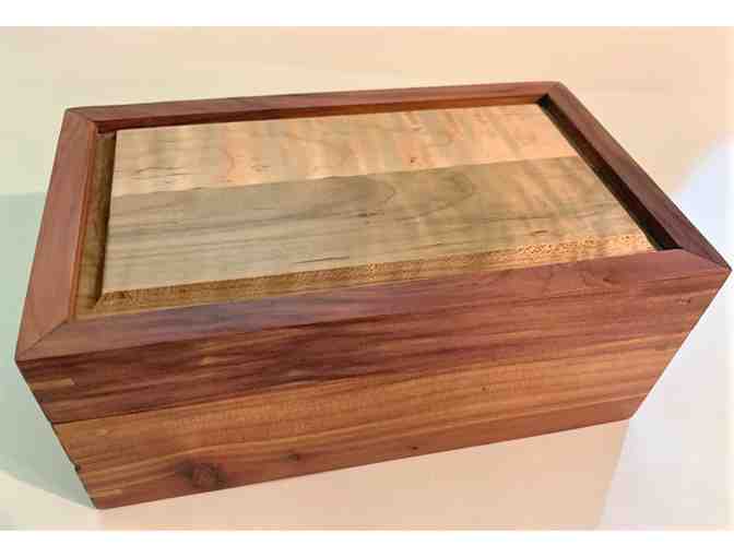 Handmade red cedar and curly maple wooden box made with great love and attention to detail. Unfortunately the photos don't do this auction item justice as it's even lovelier in person.