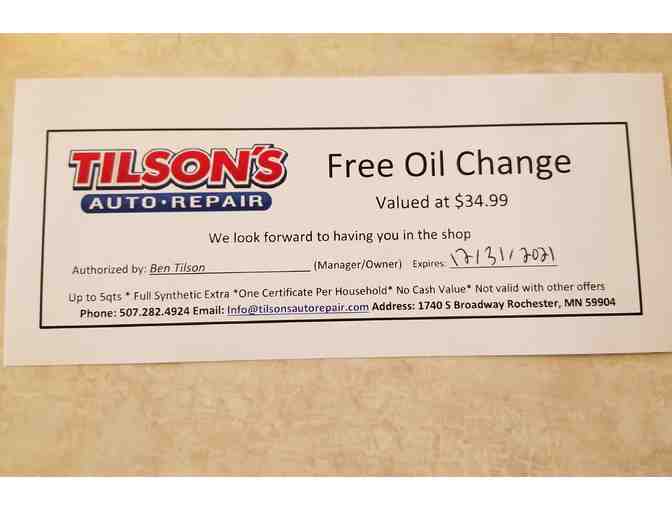 Tilson Auto Repair - Oil Change + 2 Tommy's car washes