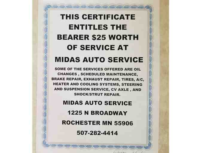 Midas Auto Service- $25 gift certificate + 2 Tommy's car washes