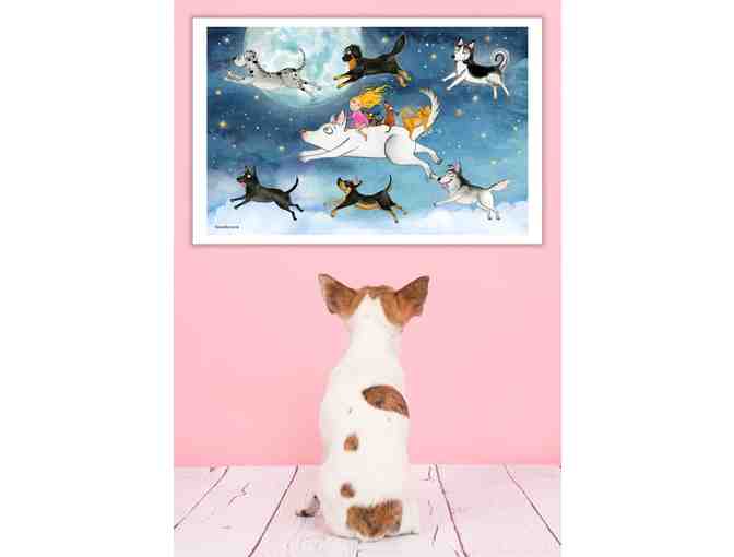 Beautifully rich reproduction of original pen & ink/watercolor drawing. Size: 8.5"x11 Signed & Numbered by artist. Archival for 100+ years. Frame NOT included with print. Red & Howling has joined forces with actor, model, dog rescuer extraordinaire, Ireland Basinger-Baldwin, to help animals in need. Inspired by Ireland's love for dogs and her unwavering devotion to them, I created this whimsical illustration of Ireland and her pack of ten wonderful pups—Ford, Rusty, Kota, Ghost, Penny, Chicken, Hops, London , Butch, and Balto (RIP sweet Balto). 50% of profits from this print will be donated to the incredibly special nonprofit Frosted Faces!