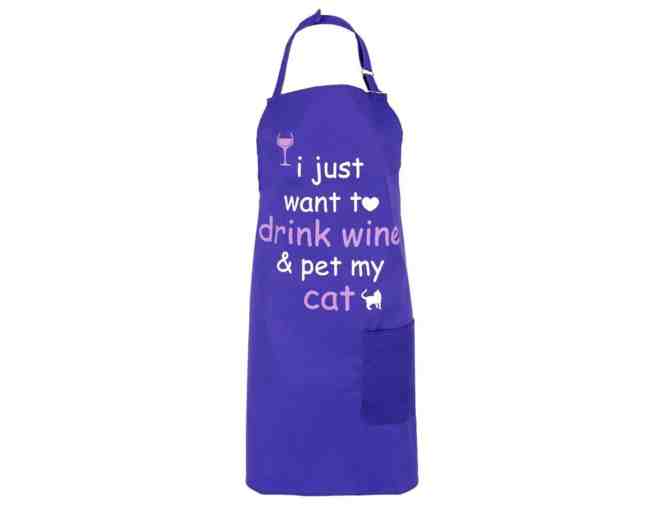 You don't ask for much, just a little quality downtime. Take command of the kitchen with a cute and conveniently pocketed apron, that tells them what's really on your mind: "I just want to drink wine & pet my cat."