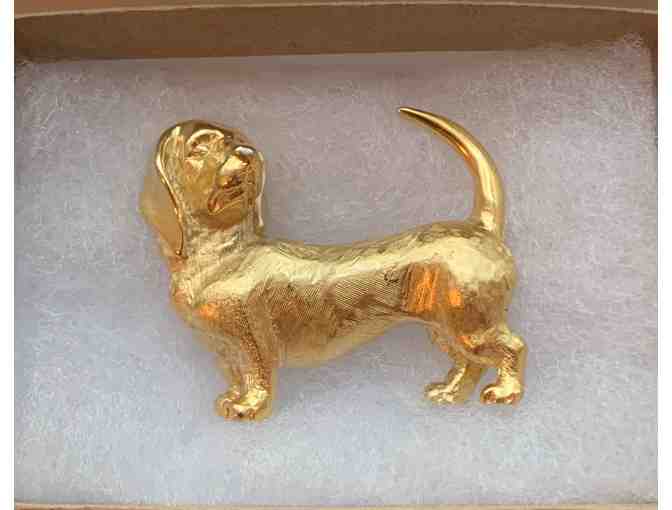 Brooch - Pin ~~ 1960'S Crown TRIFARI Gold-Tone Posing Dachshund Brooch