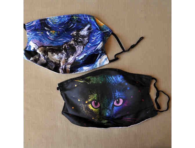 Two New Pleated, 2-Layer Masks With Ear Elastics - Wolf and Cat