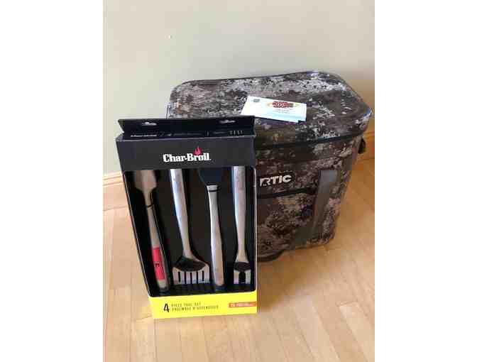 40 can RTIC cooler, 4 piece BBQ kit, $75 gift certificate to Ye Olde Butcher Shoppe