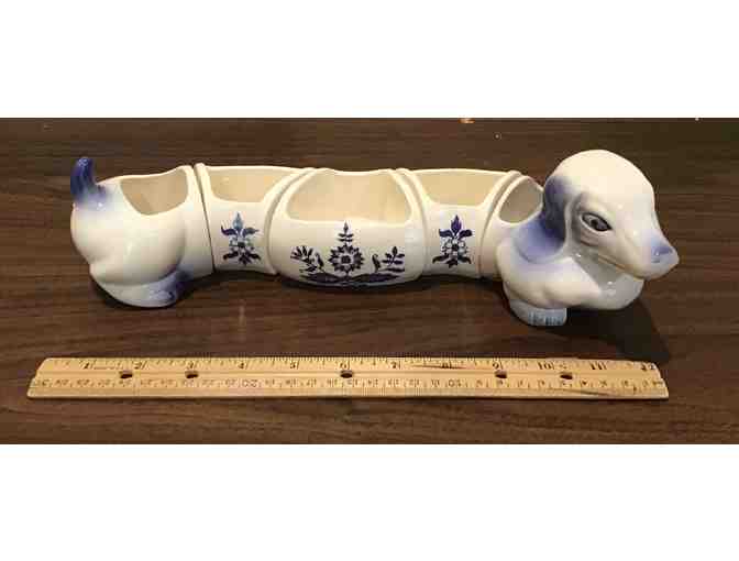 Vintage Blue Willow Porcelain Dachshund Dog Condiment Candy Nut Dish Set, Japan