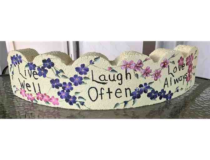 Landscape block painted with the following saying: Love Simply, Laugh Often, Love Deeply