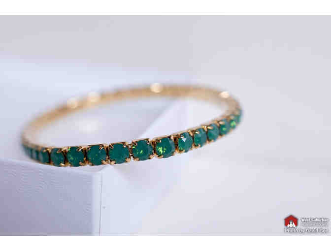 This Pandora bracelet brings a new modern twist to the classic tennis bracelet style. This design, adjustable to 9 inches, features emerald cubic zirconia detailing and a chic sliding clasp that makes it easy to adjust to suit your wrist size and preferred styling.