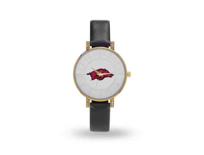 Is it time to call the Hogs? You'll know for sure when wearing this lunar style watch with polyurethane leather strap. It has a scratch resistant crystal lens and precision quartz movement.