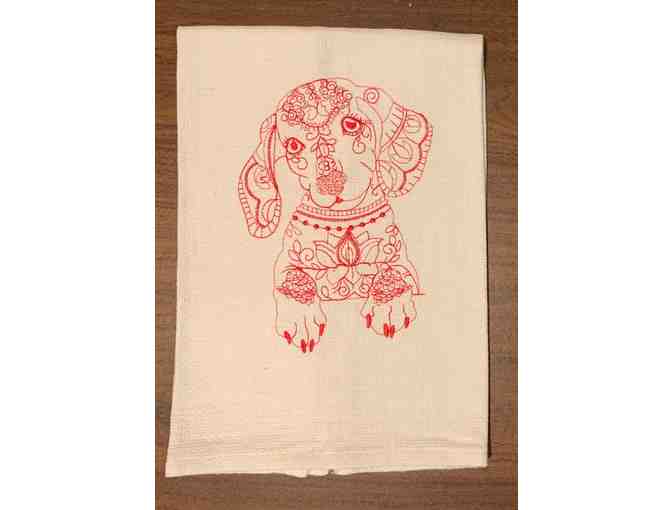 Kitchen Towel - Red 'Mandala' design Dachshund! 100% Cotton - 15" x 22"