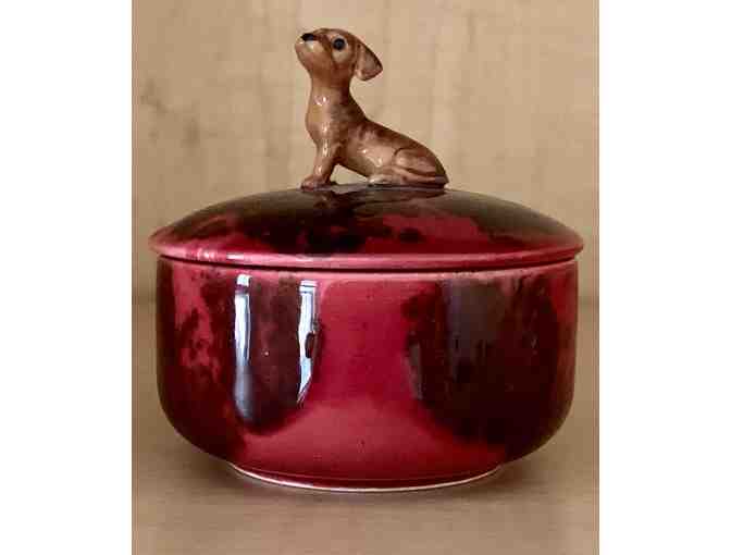 Trinket Dish - Covered Trinket Dish with adorable Dachshund Puppy on Top!